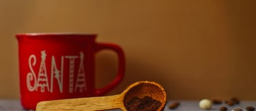 The featured image centers around a bright red mug with “Santa” written across the front in white, slightly out-of-focus in the background, that keeps the viewer’s focus right where it should be — on the warmth and detail of the foreground. The setup evokes that homey Christmas energy — joyful but grounded in everyday comfort.